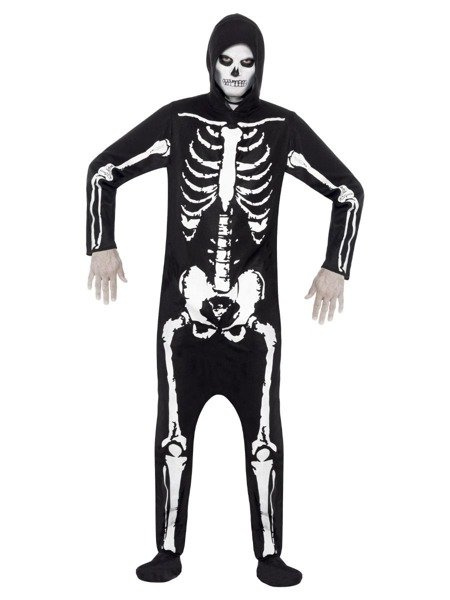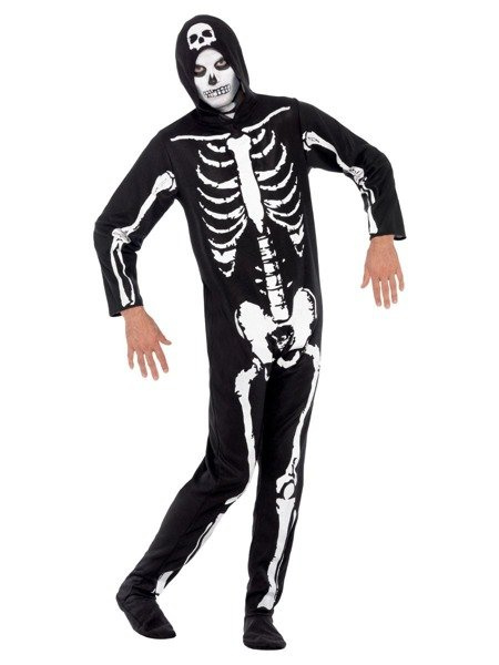 Czarny kombinezon z białym nadrukiem kości z przodu.
