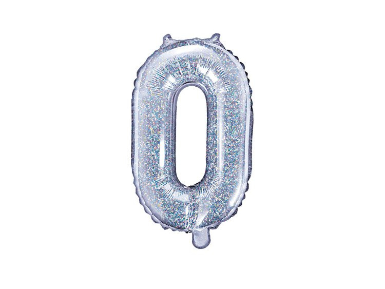 Balon foliowy, holograficzny w kształcie cyfry 0.