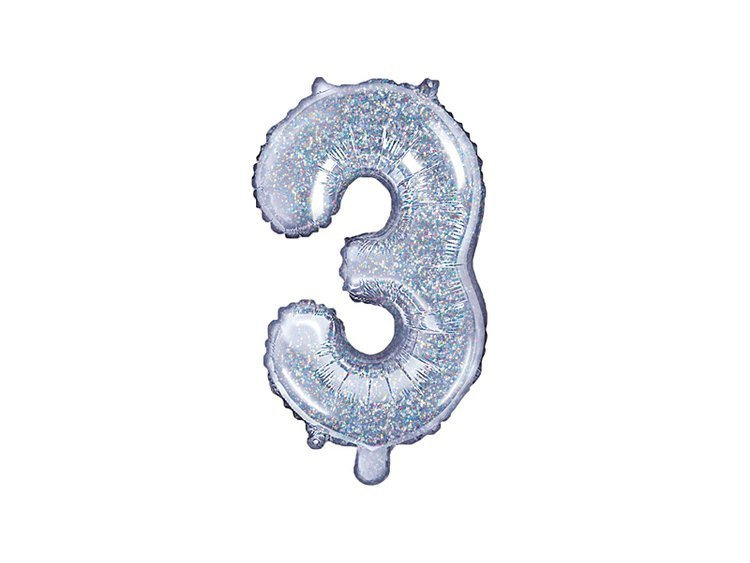 Balon foliowy, holograficzny w kształcie cyfry 3.