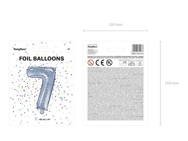 Balon foliowy, holograficzny w kształcie cyfry 7.