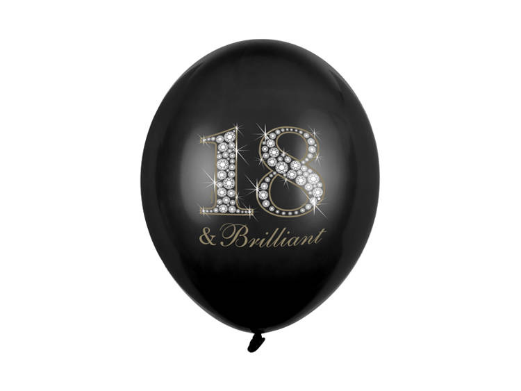 Balony czarne 18 & Brilliant z dwustronnym nadrukiem.