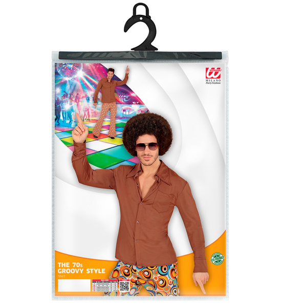 Koszula z długim rękawem, w stylu lat 70-tych.Kolor brązowy, posiada kieszonkę.Zapinana z przodu na guziki.