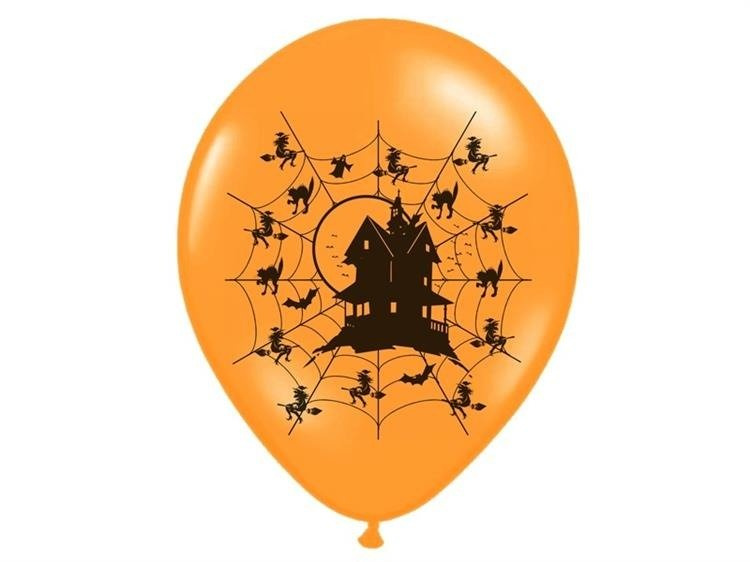 Balony Strong Nawiedzony dom w kolorze Pastel Mandarin Orange z czarnym, pięciostronnym nadrukiem, średnica 30 centymetrów.(1 op. / 50 szt.)