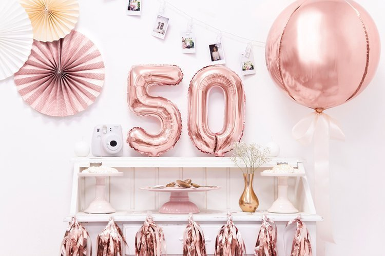 • BALON FOLIOWY 35cm, CYFRA 5 RÓŻOWE ZŁOTO