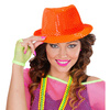 <p>Kapelusz typu fedora w kolorze neonowej pomarańczy.<br />Zdobiony cekinami.</p>