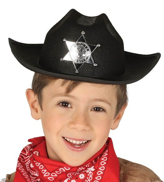 Czarny kapelusz z srebrną gwiazdą szeryfa.