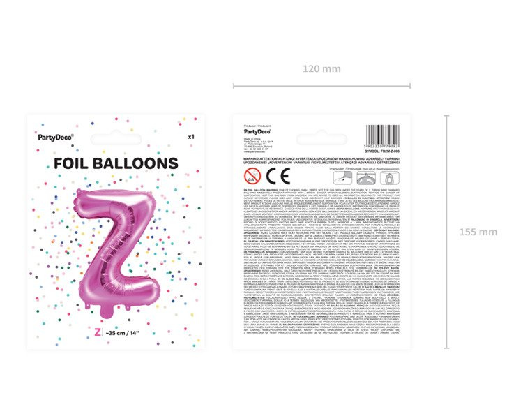 Balon foliowy, metaliczny w kształcie litery Z.