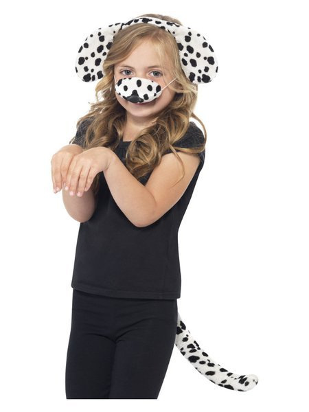 Strój Dziecięcy Dalmatyńczyk, karnawał, halloween, kolor czarno-biały, zestaw zawiera: uszy na opasce, nos i ogon