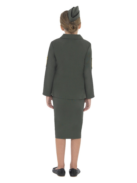 Strój w kolorze ciemnej zieleni z emblematami, złotymi wstawkami.