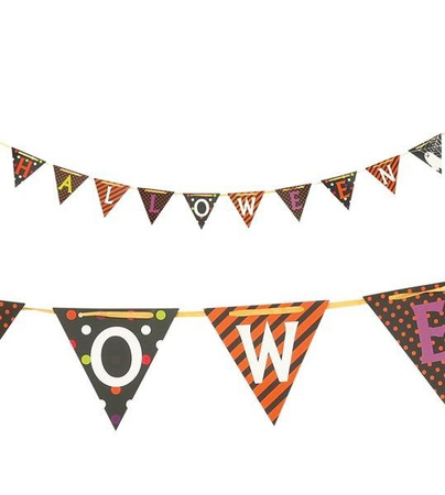 Girlanda Halloween mocowana na żółtej tasiemce.