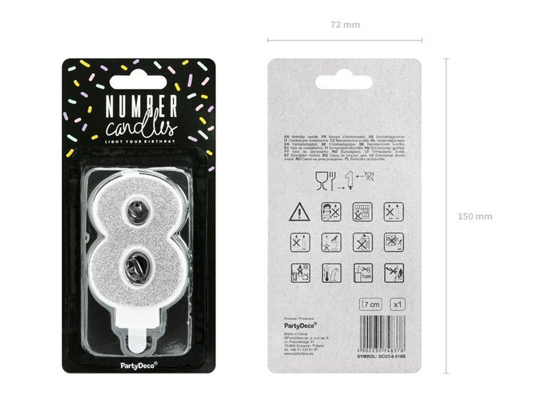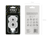 Świeczka w kolorze srebrnym, w kształcie cyfry 8.