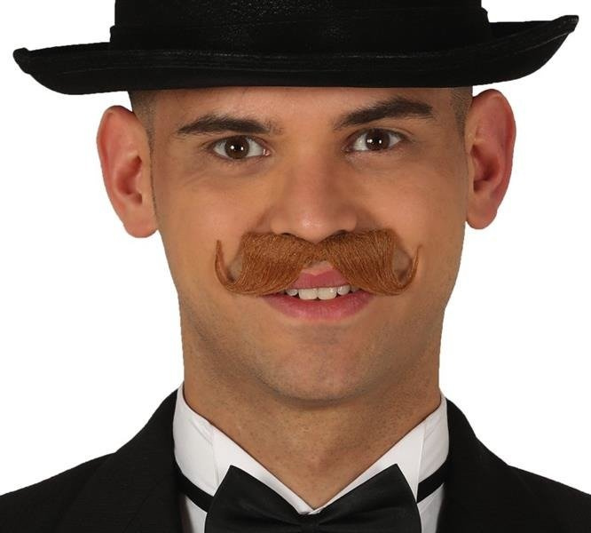 Wąsy w stylu retro w kolorze brązowym, na końcach mocno wywiniete do góry.