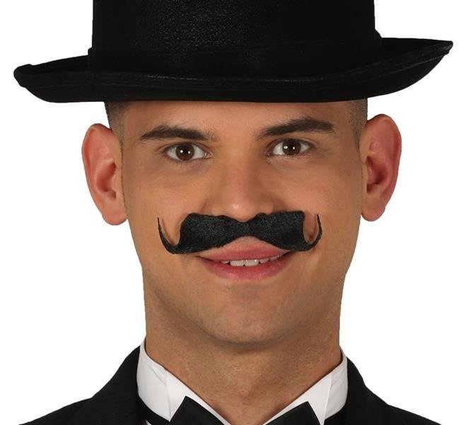 w stylu retro w kolorze czarnym, na końcach mocno wywiniete do góry.