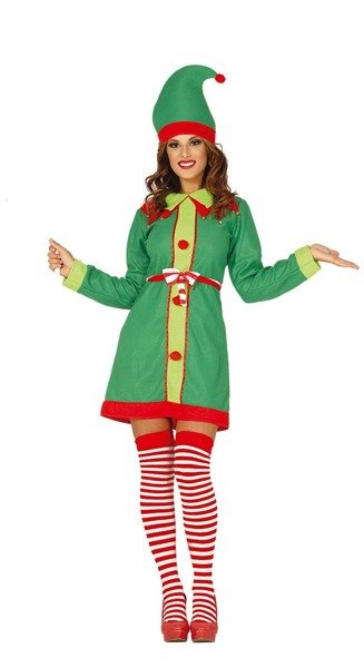 Strój oraz czapka w kolorze zielonym, z czerwonymi wstawkami.