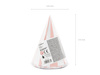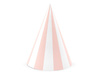 Zestaw białych papierowych czapeczek w jasnoróżowe paski.