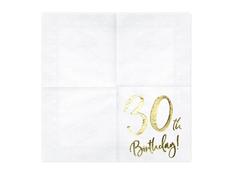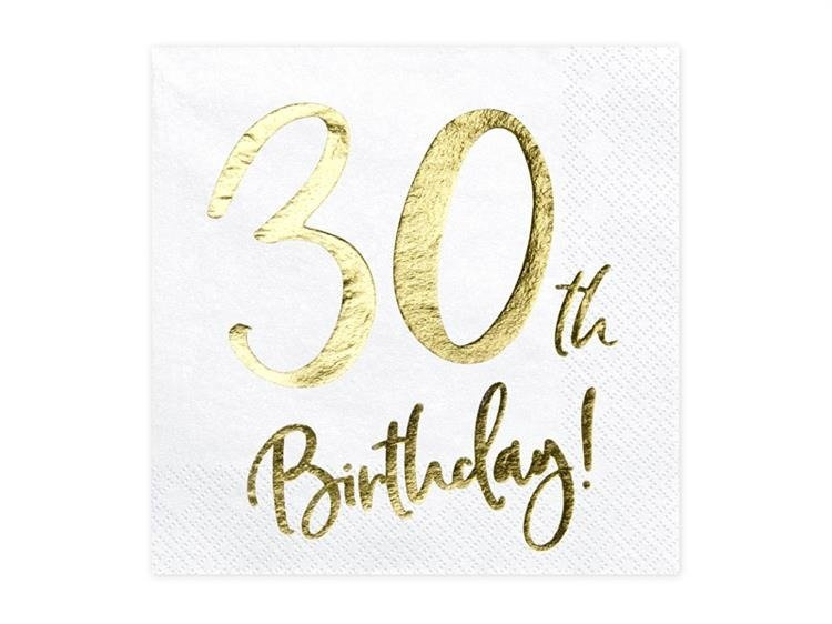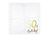 Zestaw serwetek w kolorze białym ze złotym napisem 30th Birthday!