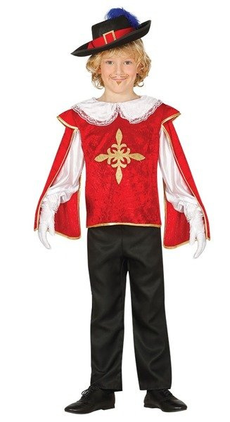 Bluzka czerwona z peleryną, białymi rękawami i koronkowym kołnierzem.