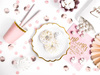 Talerzyki papierowe w kolorze białym ze złotymi, lekko falowanymi brzegami.