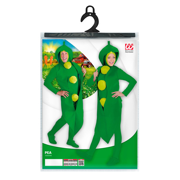 Strój groszek wykonany z miękkiego materiału w kolorze zielonym.