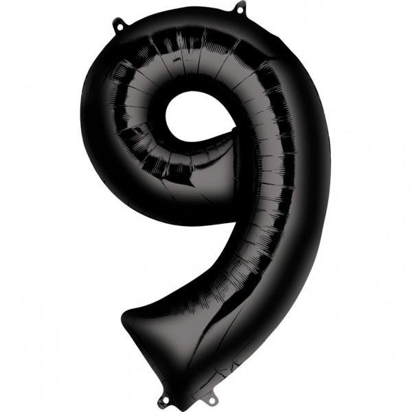 BALON FOLIOWY 86cm x 63cm, CYFRA 9 CZARNA