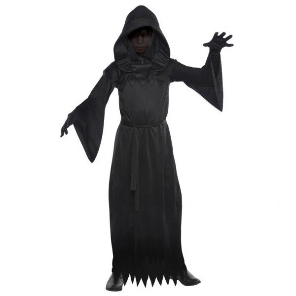 Strój i pasek wykonany z materiału w kolorze czarnym, do kaptura doszyta siateczka.