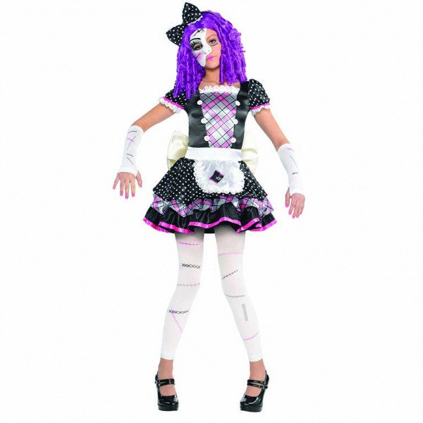z krótkim rękawem, doszytym fartuszkiem i falbankami.