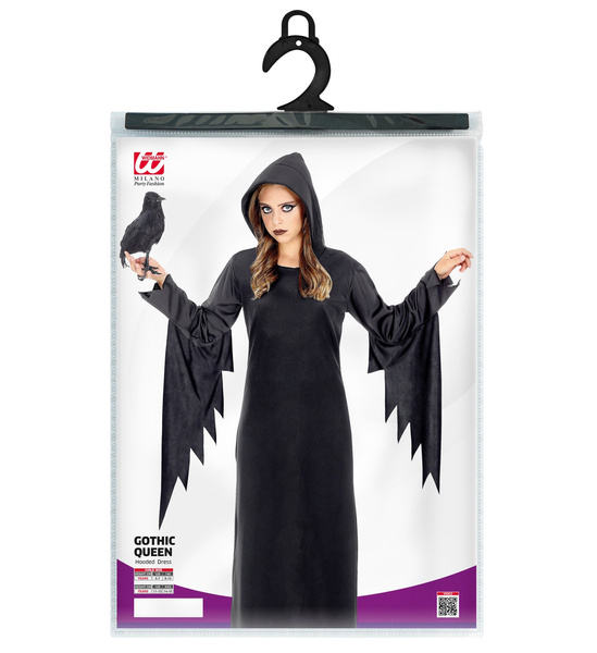 Posiada doszyty kaptur oraz materiał przy rękach.