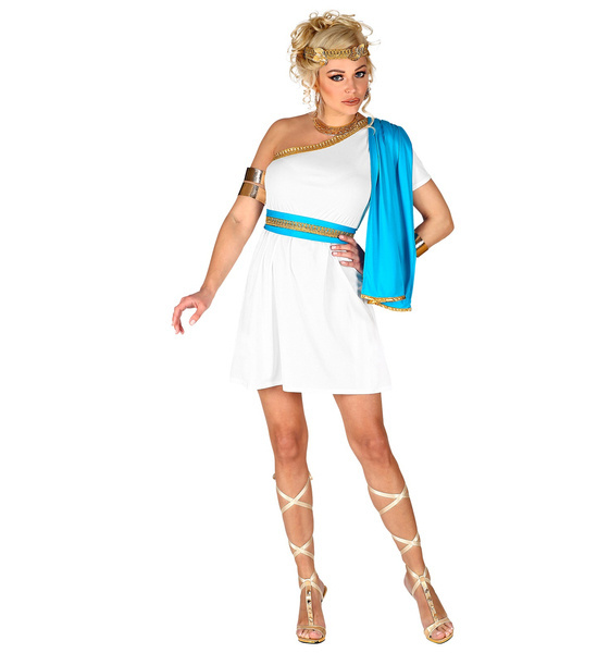 Sukienka w kolorze białym z doczepioną niebieską falbanką.
