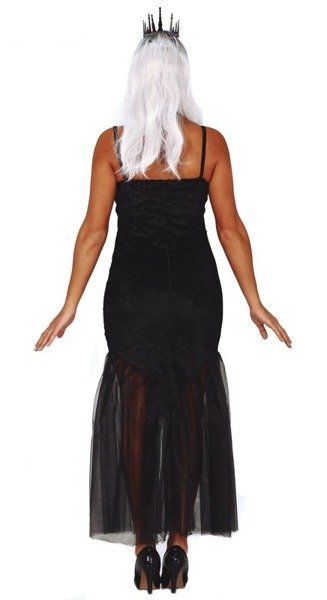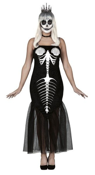 Sukienka w kolorze czarny z białym nadrukiem szkieletu syreny i tiulowym materiałem.