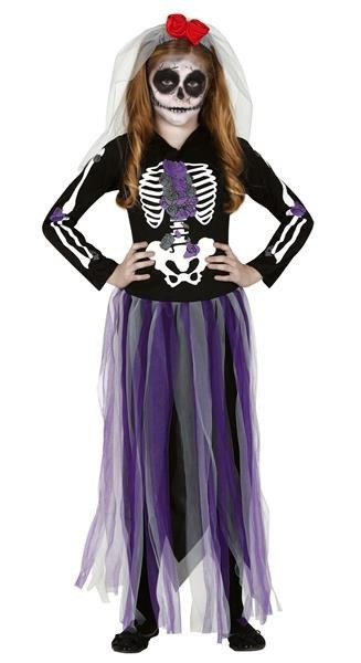 Sukienka z czarną, gładką górą i nadrukiem szkieletu. Dół z