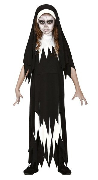 Nakrycie głowy czarne z białą opaską i długim materiałem sięgającym za ramiona.