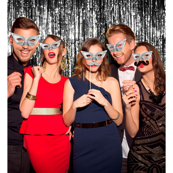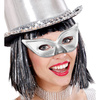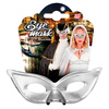 Maska wykonana z usztywnionego materiału w kształcie kocich oczu.