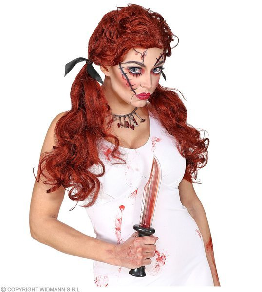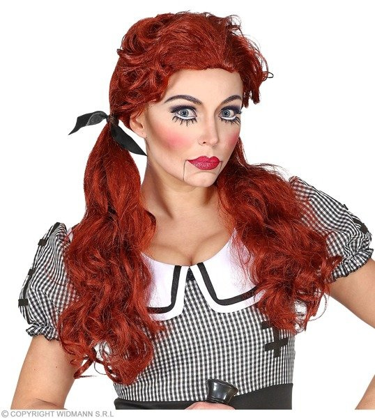 w kolorze rudym, włosy uczesane w kitki z kokardkami.