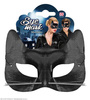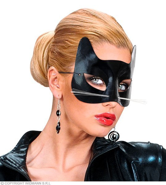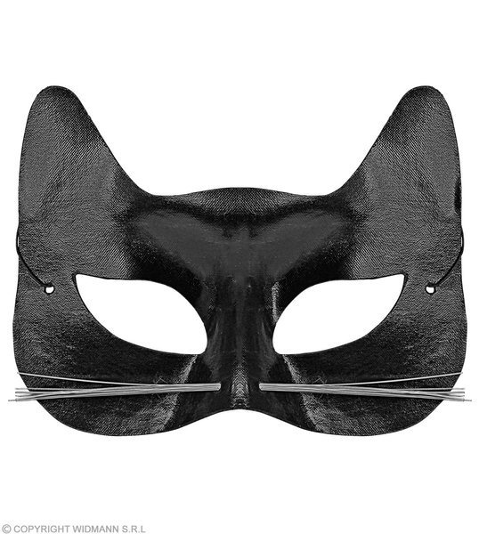 Maska wykonana z usztywnionego materiału, z połyskiem.