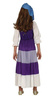 Sukienka w kolorze fioletowym z jasnymi wstawkami zdobiona złotymi koralikami.
