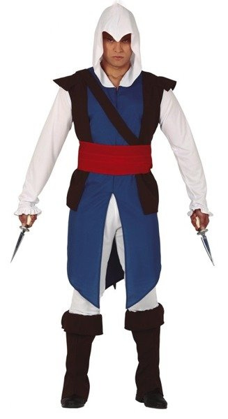 Tunika z kapturem i szerokim pasem.