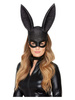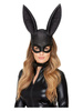 Maska czarna, pokryta brokatem, z długimi uszami. Mocowana na elastycznej gumce.