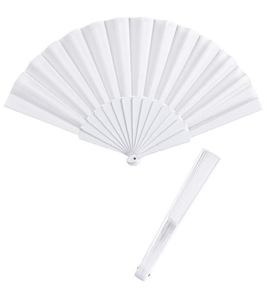 Rozkładany wachlarz wykonany z białego materiału oraz 14 plastikowych ramion.