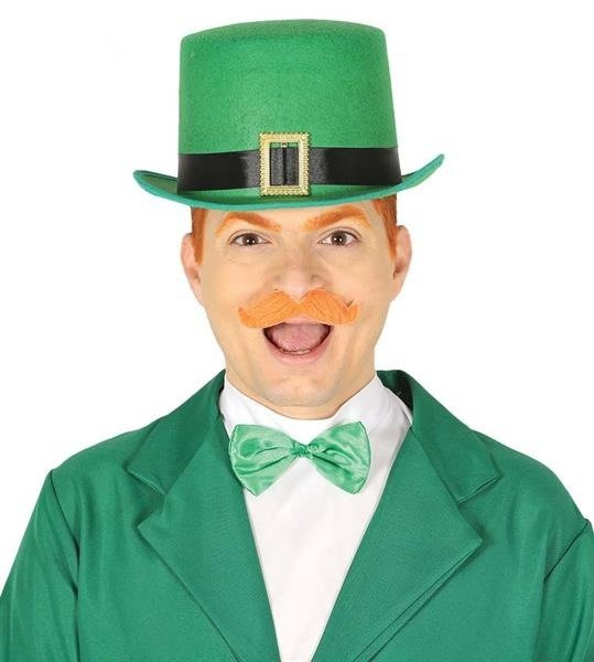 Cylinder św. Patryka w kolorze zielonym z czarną wstążką i klamrą.
