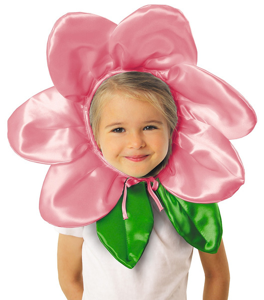 Czapka z błyszczącego materiału w kształcie kwiatka.