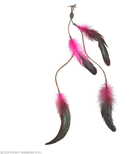 zakończony różowo-czerwonymi piórkami.