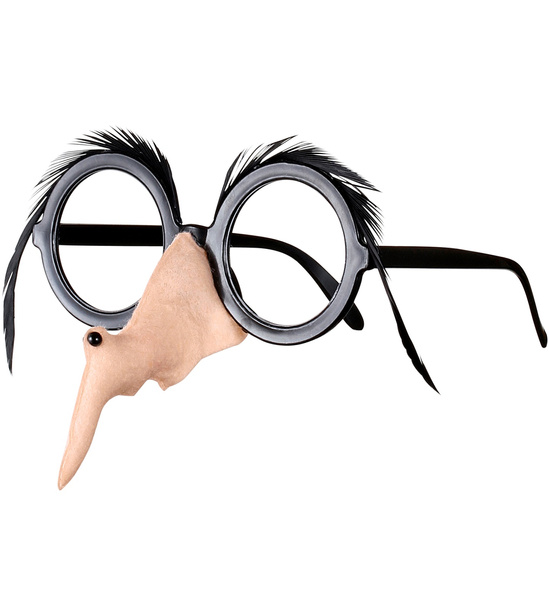 Okulary z Nosem Wiedźmy, Dodatki, okulary czarne ozdobione brwiami, do okularów dołączony nos z pieprzykiem