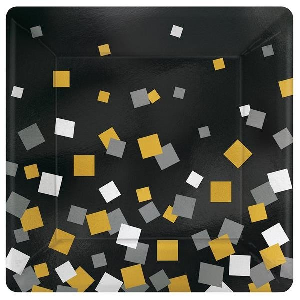 nadrukiem srebrno-złotego konfetti.