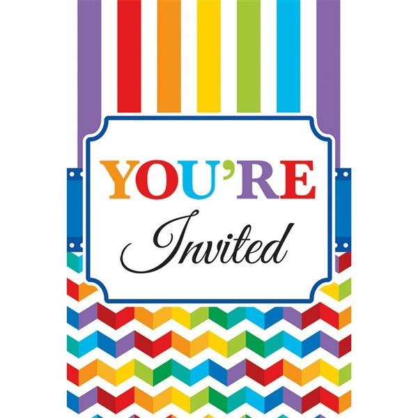 nadrukiem kolorowych pasków i z napisem "You're invited".