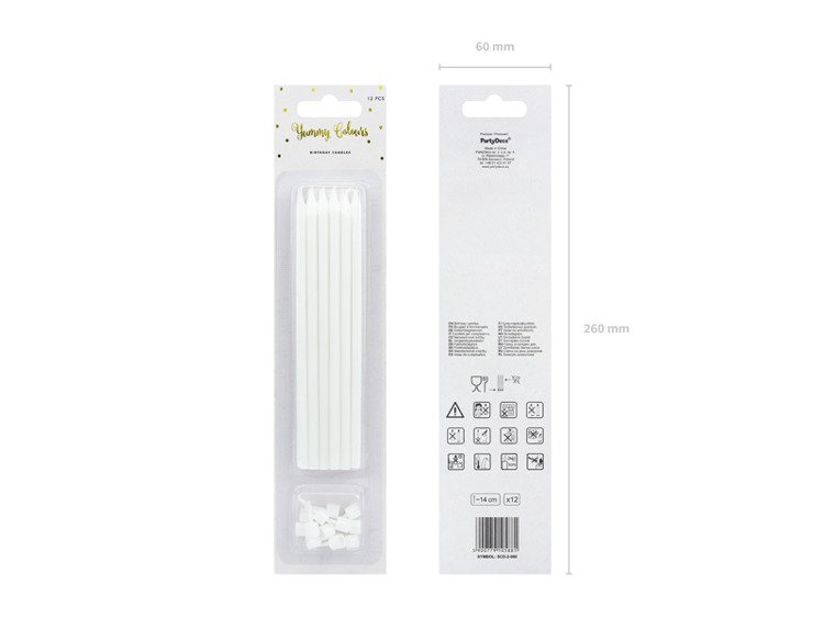 W zestawie: 12 świeczek + 12 podstawek.