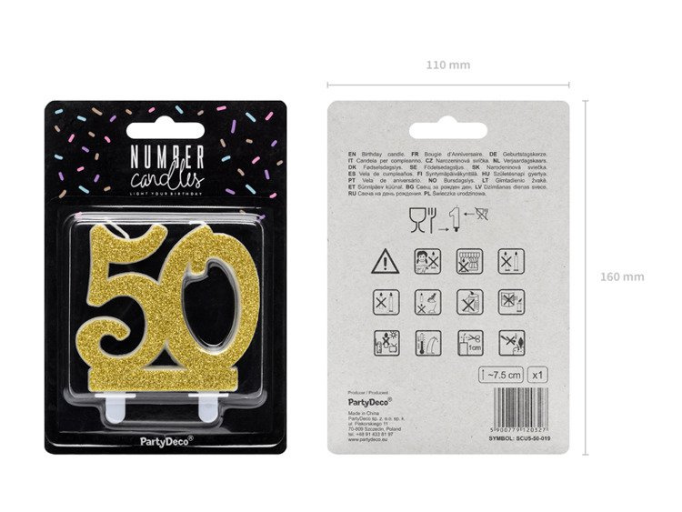 Świeczka urodzinowa w kolorze złotym brokatowym.