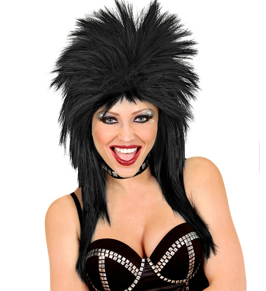 Peruka w kolorze: czarnym. Włosy proste, z nastroszoną grzywą. Peruka mocowana na elastycznej siatce. Włosy są błyszczące, wyglądają naturalnie.