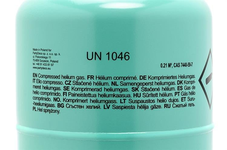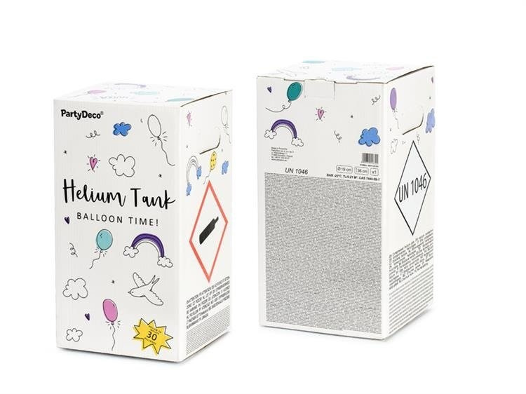 Butla z helem na 30 szt. balonów w kolorze miętowym z czarnym nadrukiem.