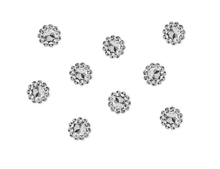 Aplikacje Kwiatek w kolorze srebrnym, rozmiar 10 milimetrów.(1 karton / 200 op.)(1 op. / 50 szt.)