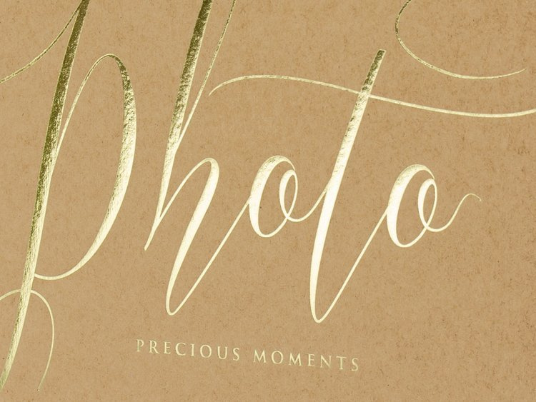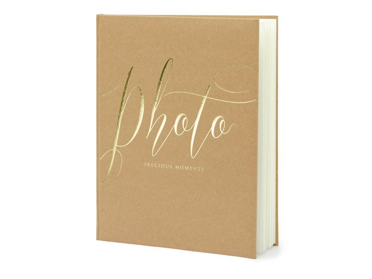 Album na zdjęcia oprawiony papierem w kolorze kraftowym ze złotym napisem Photo.